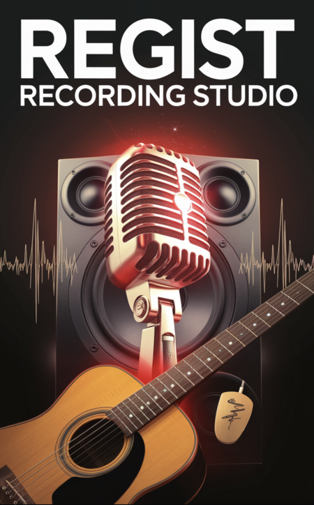 1. Promt Image: a captivating advertising poster that advertises the REGIST recording studio. The poster is meant to convey a metaphor of music and energy