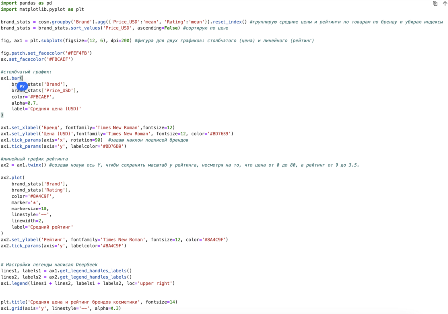 Для работы над визуализацией данных в этом проекте я пользовалась DeepSeek для решения некоторых задач, например, для создания звёздочек