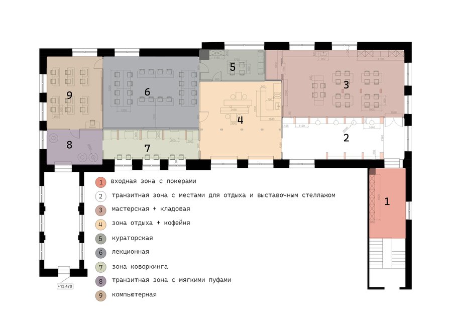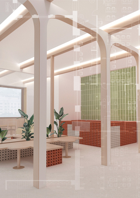 Цель — создать пространство, где будет гармонично соединяться прошлое здания с его новым назначением — через: