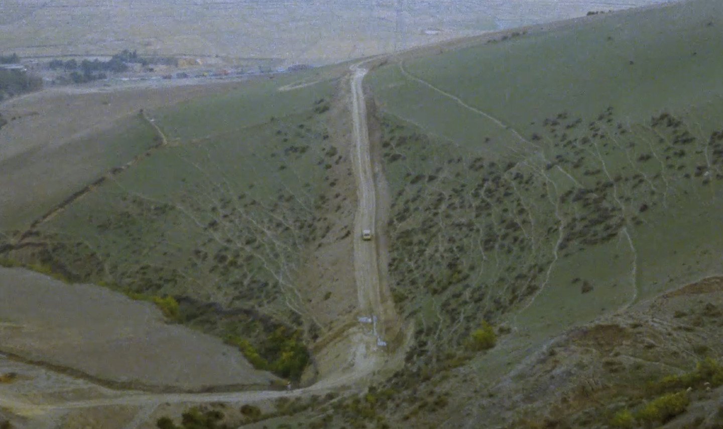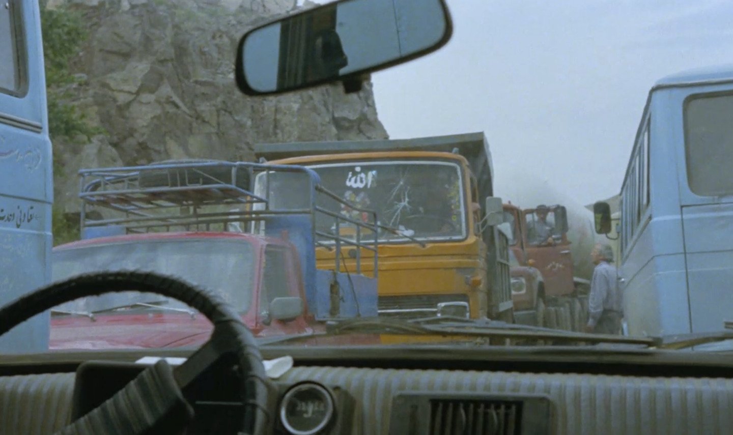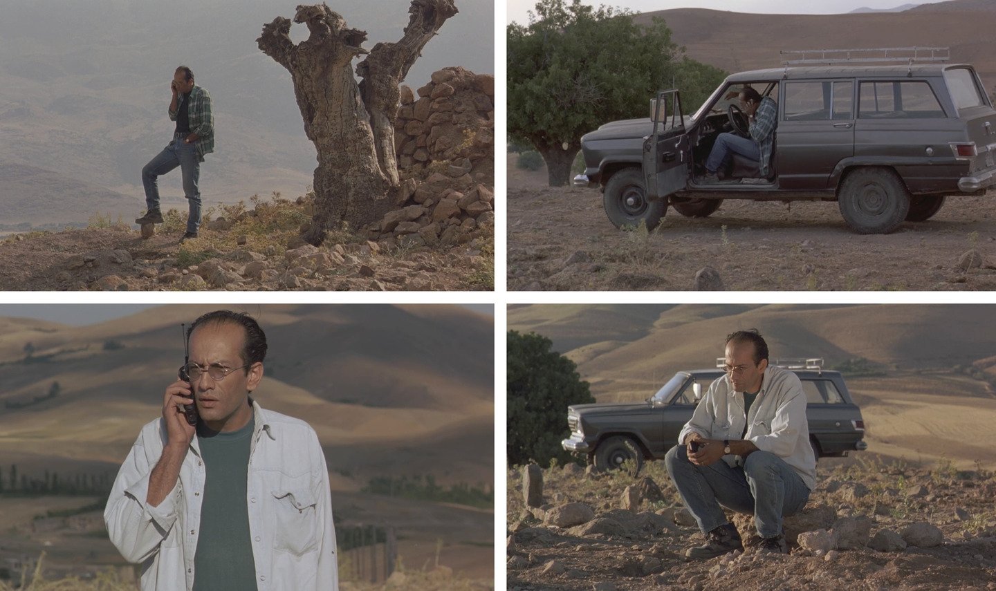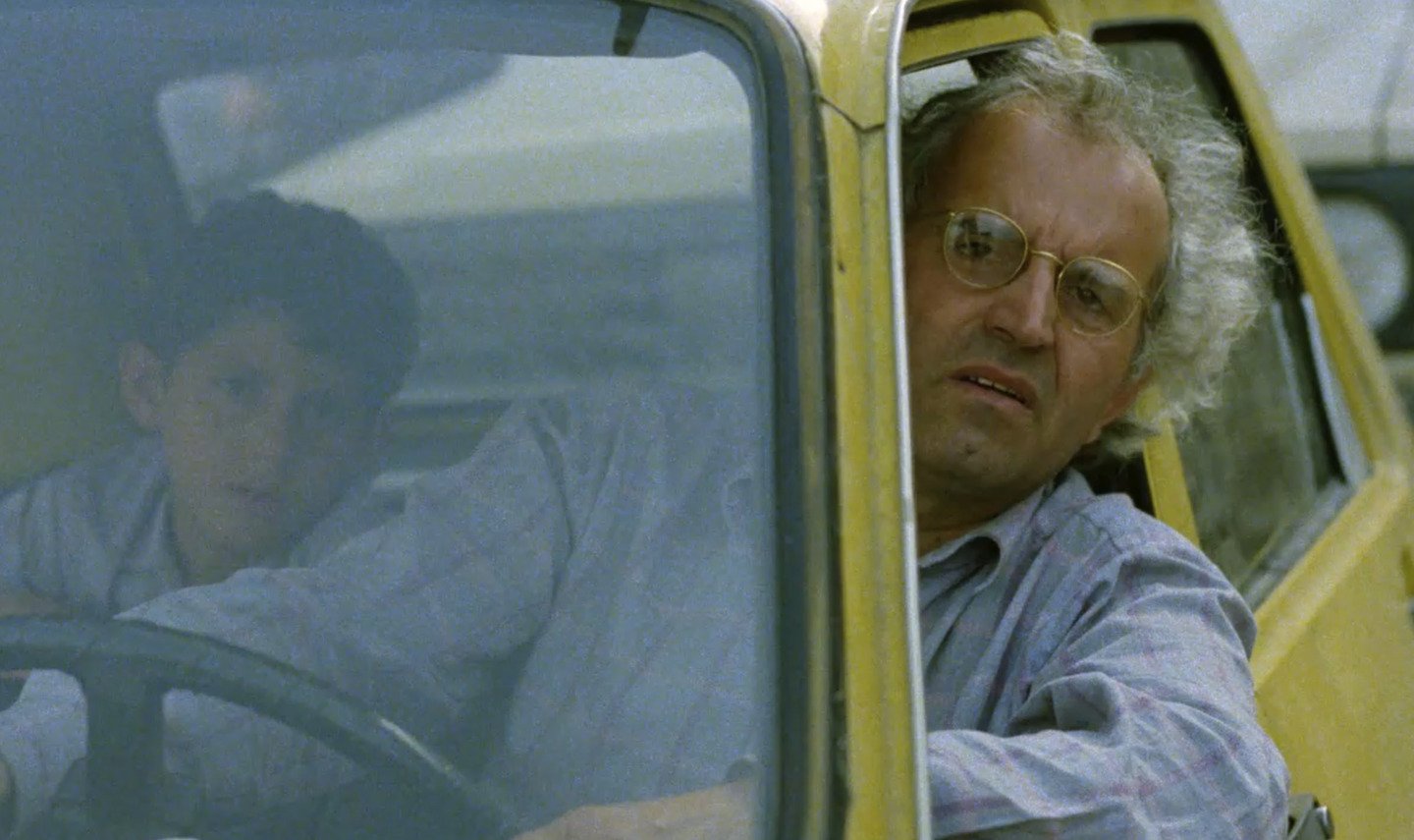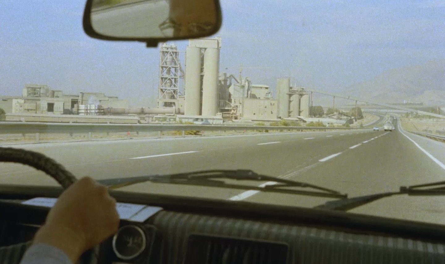 Во «Вкусе вишни» путь окончательно теряет географическую цель и становится круговым движением по лабиринту экзистенциального отчаяния. Дорога ведет не куда-то, а всегда возвращает героя к одному и тому же месту — вырытой могиле. Главной визуальной рамкой становится лобовое стекло автомобиля, которое служит одновременно и барьером, отделяющим господина Бади от мира, и видоискателем, через который он исследует жизнь в поисках аргумента против смерти.