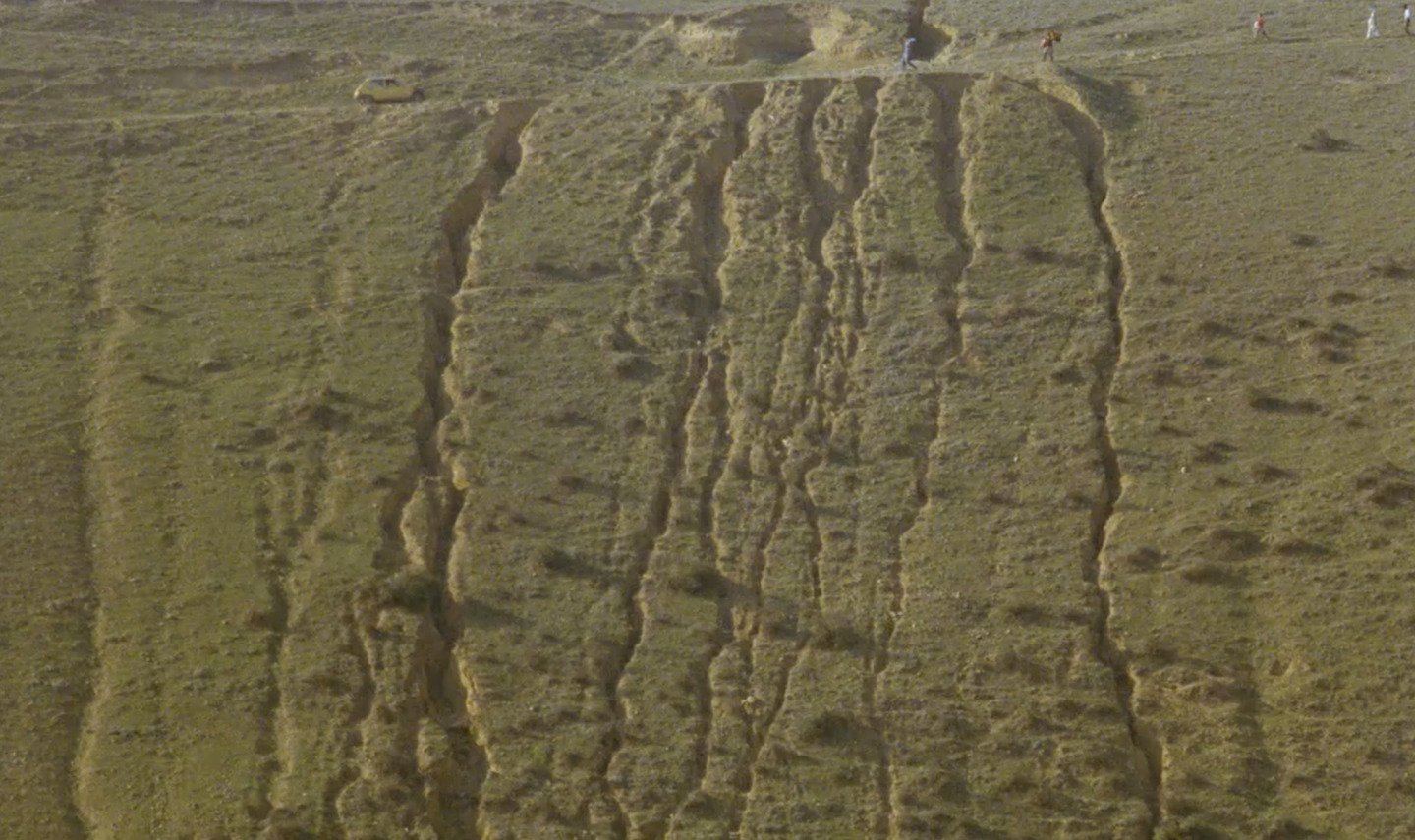 План-эпизоды во «Вкусе вишни» наиболее остро ощущаются в индустриальных локациях стройки. Одинокие песчаные ландшафты, по которым бродит Бади, визуализируют внутреннее состояние отчаяния главного героя, делая его осязаемым.