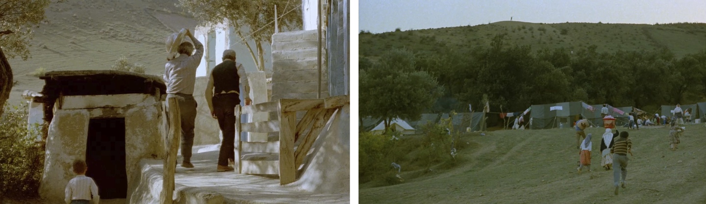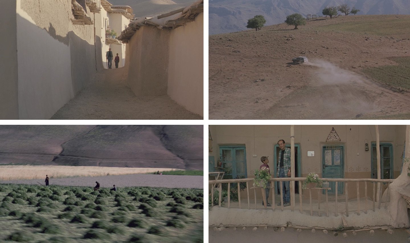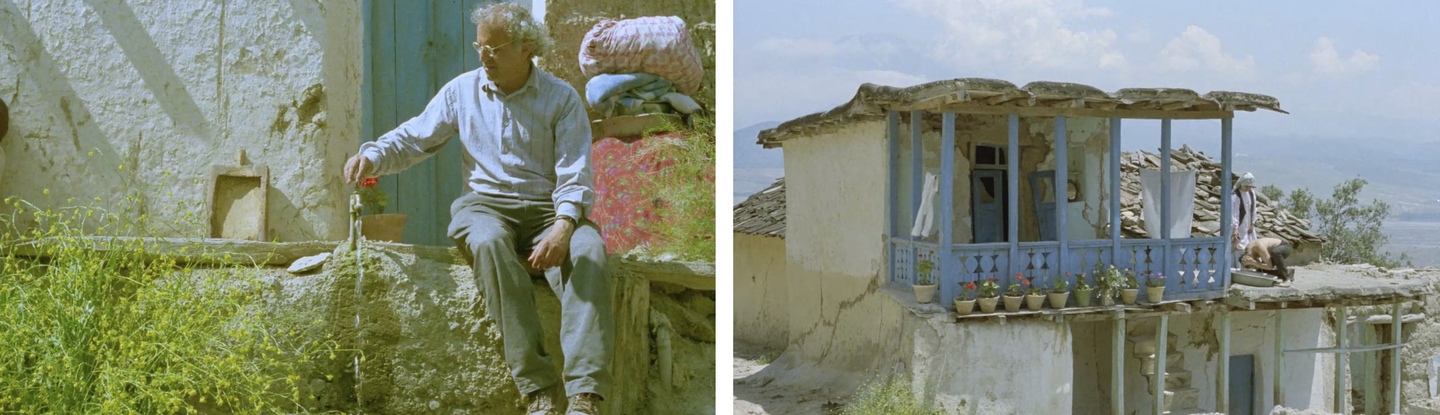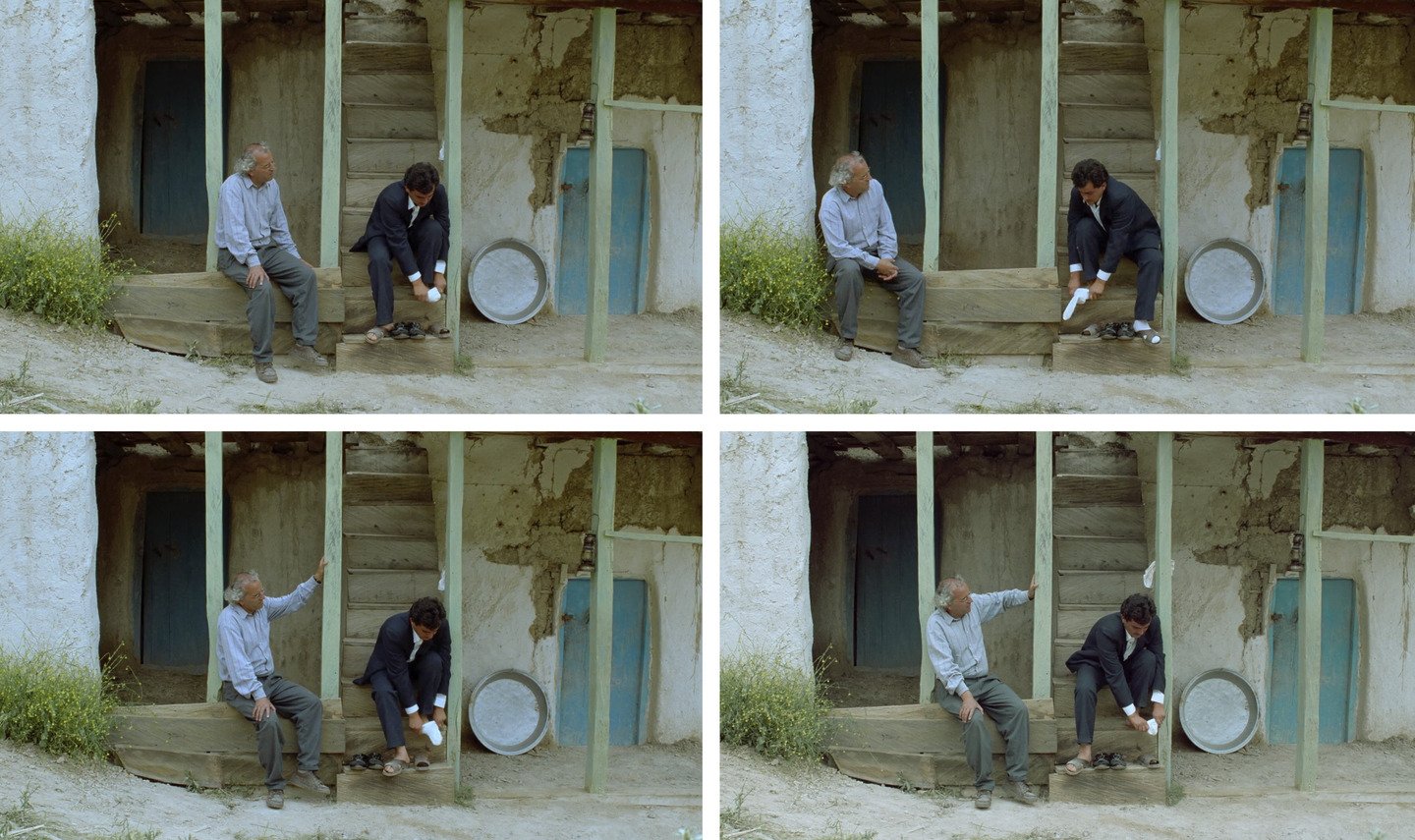 В «Где дом друга?» Киаростами превращает топографию деревни в визуальную метафору этического выбора. Крутые, петляющие тропы и лестницы создают ощущение непреодолимого лабиринта, где физическое движение равноценно моральному усилию. Содержание кадра передает не столько географию места, сколько «ландшафт» души ребенка — одиночество и упрямую решимость в сделанном им моральном выборе. Рамки (двери, окна) визуально отделяют мир равнодушных взрослых, поглощенных рутиной, от мира ребенка, живущего порывом дружбы и долга.