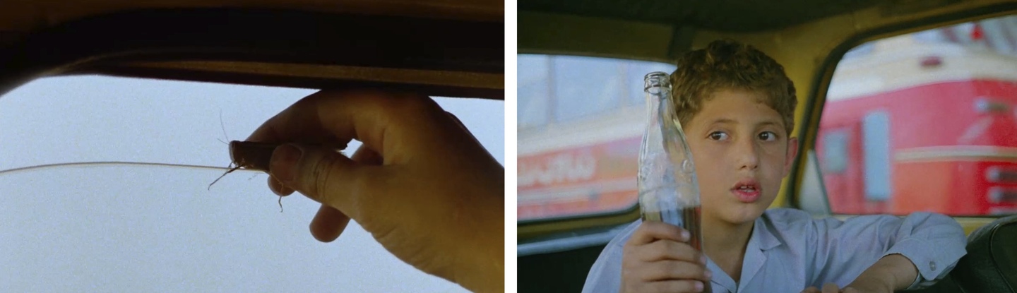 Важной деталью с точки зрения монтажа также является и то, что во время диалогов в машине показываются попеременно то Бади на месте водителя, то его собеседник на месте пассажира, но никогда не попадают в кадр оба участника разговора одновременно. Этот прием подчеркивает непреодолимую дистанцию между Бади и окружающими.