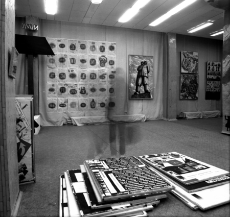 Экспозиция выставки «Клуба авангардистов» в Сандуновских банях, 1988 год.