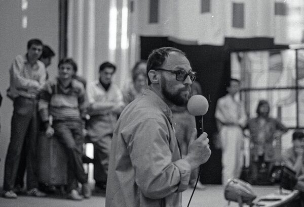 1. Открытие выставочного зала любительского объединения «Эрмитаж». Дмитрий Пригов, 1987 год. Фотография: Андрей Безукладников 2. Ирина, Илья и Иван Пигановы, 1987 год. Фотография: Андрей Безукладников
