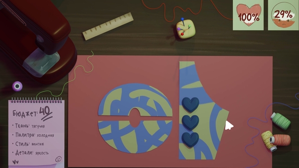 Скриншоты из игры: рабочий стол для пошива одежды / Жозефина за вышивкой.