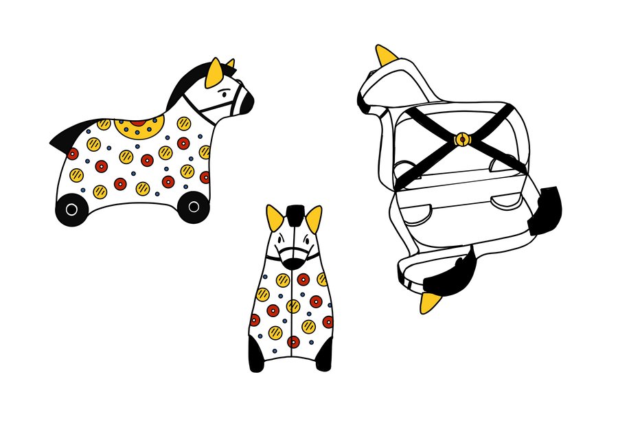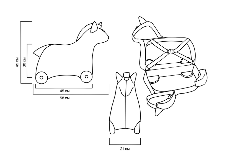 Многофункциональная игрушка для путешествий в виде чемодана-дымковского коня, способствующая взаимодействию родителя
