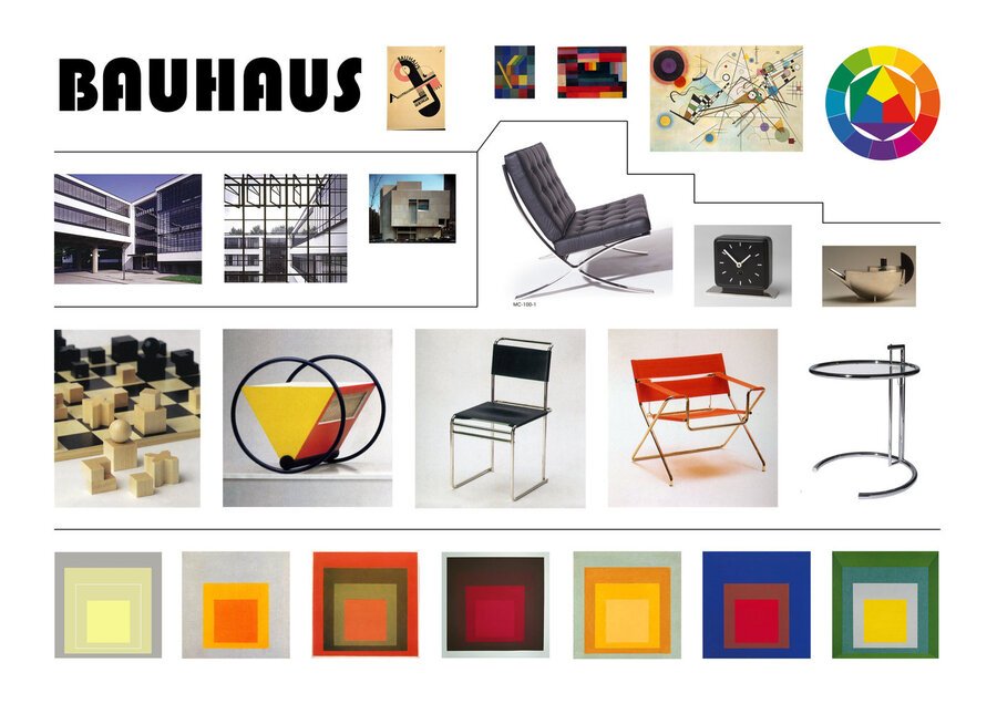Идеи простоты и утилитарности в композициях нашли отражения в дизайне эпохи Баухауза, где форма часто следовала за функцией.