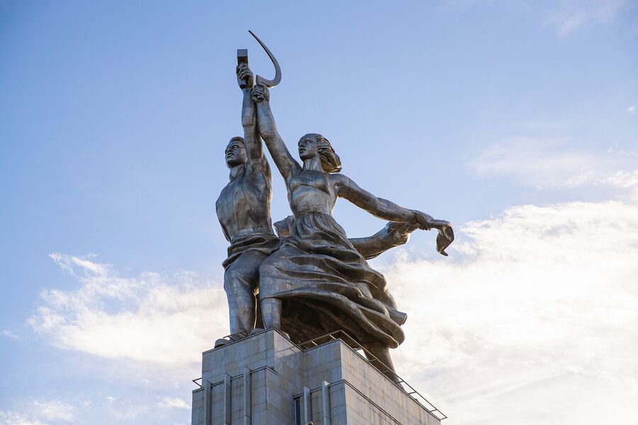 [Символика и цветовая семантика] Символы СССР часто подчинялись идеологии: серп и молот, пятиконечная звезда, изображения рабочих и крестьян.