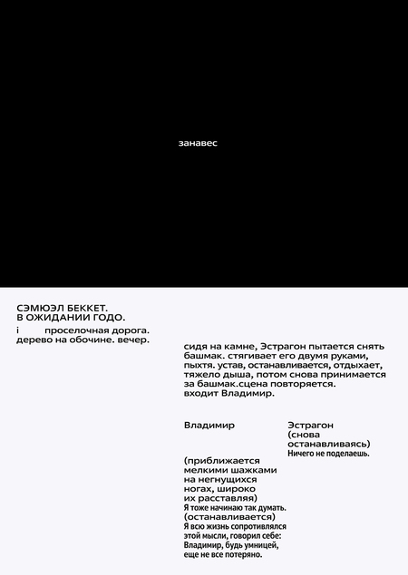 Верстка в четыре колонки помогает усилить ритмичность повторений и хаоса в пьесе.