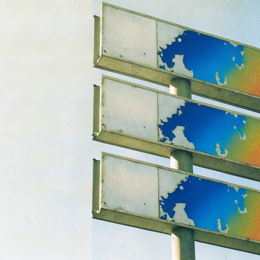 layered billboards with peeling geometric edges revealing color gradients» | radiator geometric patterns with heat distortion waves