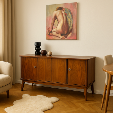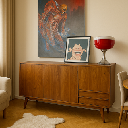 «Сгенерируй изображение интерьерной карточки для маркетплейса (например, Авито). Используй в качестве референса фотографию винтажного предмета мебели, которую я прикреплю. Повтори его форму, пропорции, материал и цвет. Помести предмет в нейтральный, но стильный интерьер (в духе минимализма, mid-century или brutalism), чтобы показать, как он может быть интегрирован в современное пространство. Фон должен быть светлым, чистым, без лишнего декора — важно, чтобы предмет оставался главным акцентом. Сцена должна быть естественной, как будто мебель стоит в квартире или студии. Карточка будет использоваться как визуальный референс для покупателей: она должна вдохновлять и объяснять, как винтажная мебель вписывается в интерьер. Генерируй в вертикальной ориентации, под формат онлайн-объявления.»