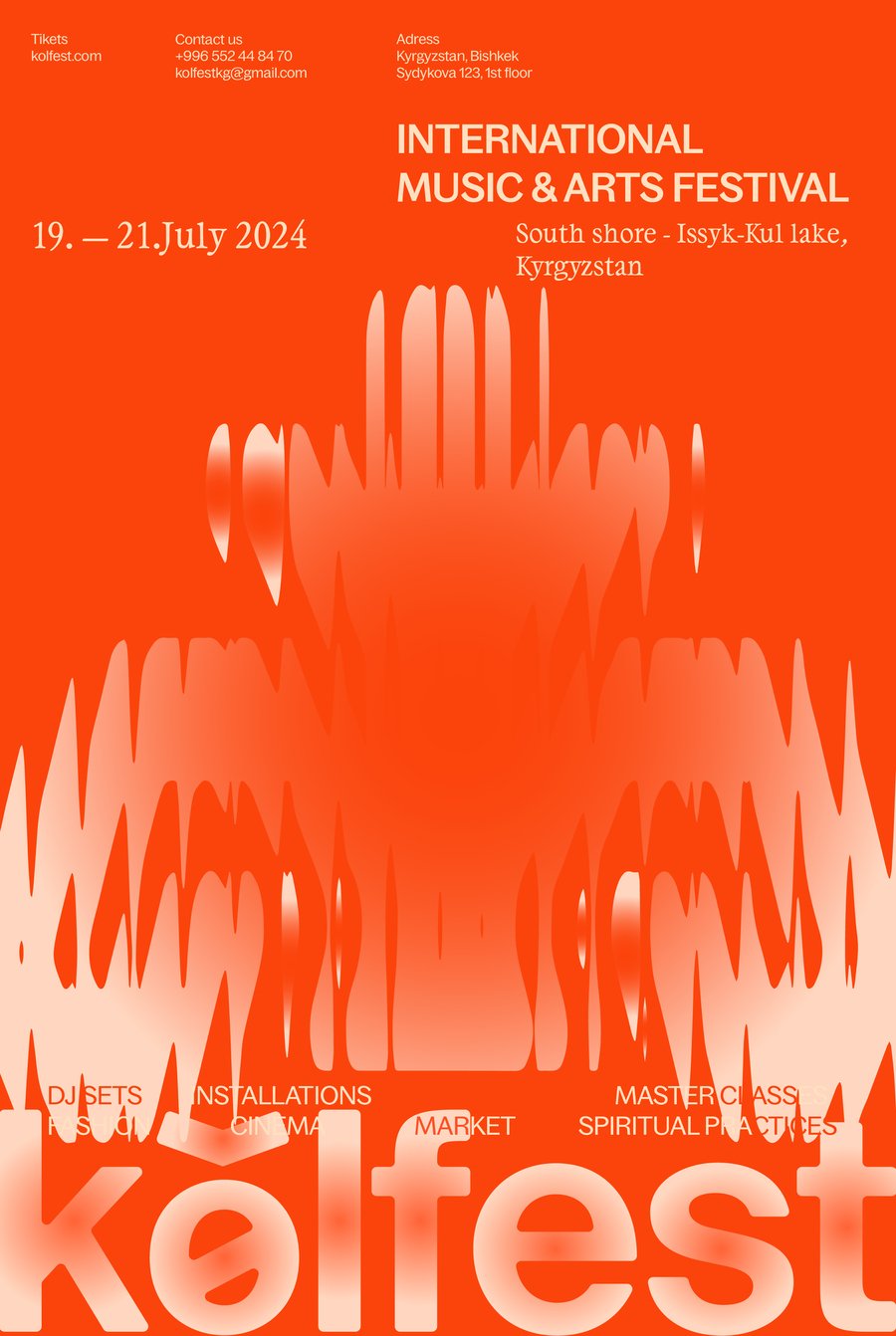 Kolfest is the first international festival of music and art in Central Asia to bring together people, music and creativity from Central Asia and other countries. The metaphor is based on waves. The waves of music, the waves of the lake, the heat, the light, the culture. Vibrations of culture that create ripples on the water. Reference to project