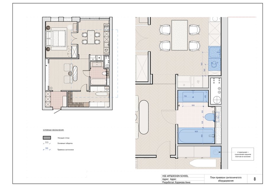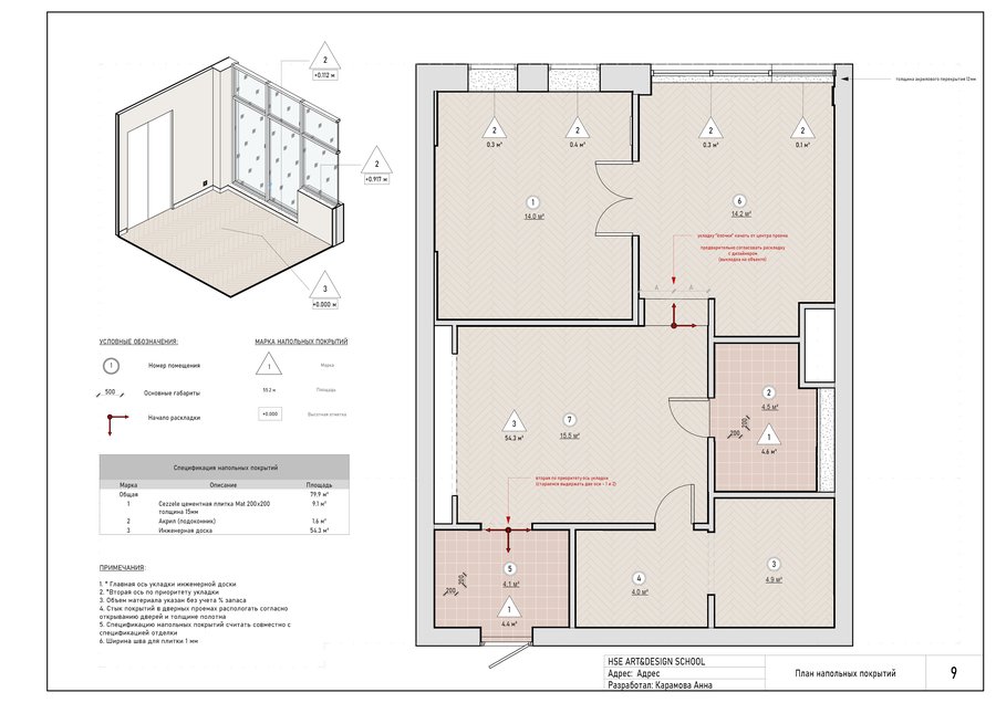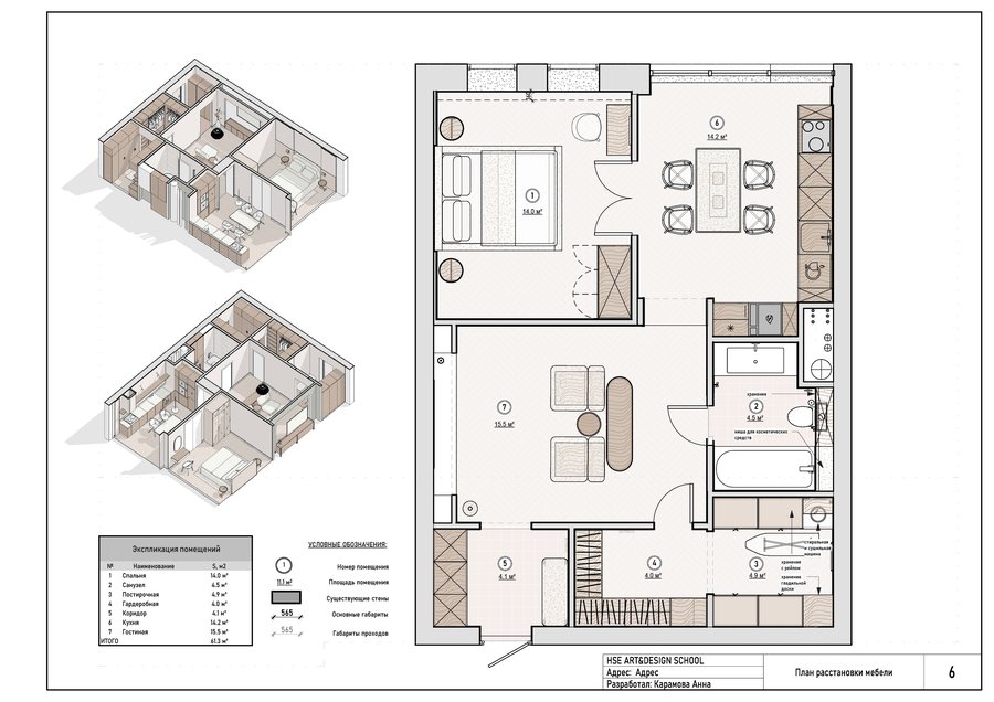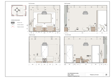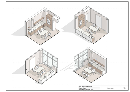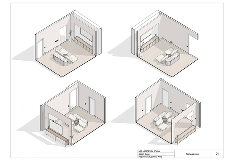 Дизайн-проект интерьера для квартиры, выполненный в REVIT.