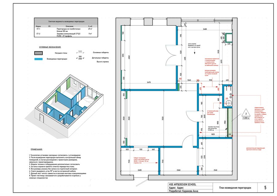 Альбом чертежей содержит планы, а также развертки, 3D схемы и перспективные виды для гостиной, кухни и спальной.