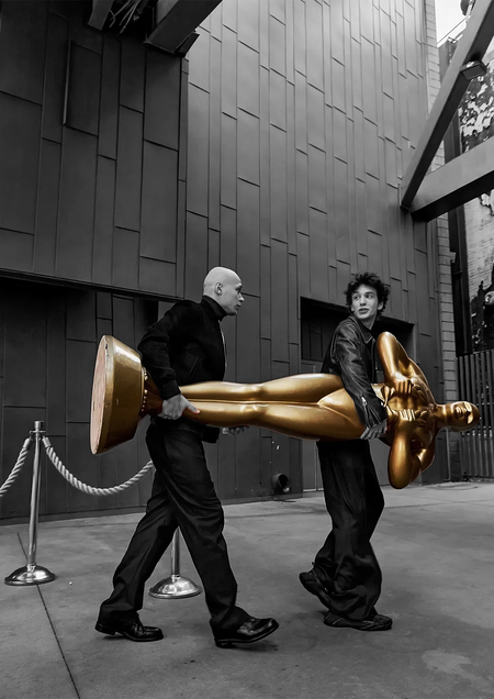 промпт для midjourney: oscar award fashion shoot, hipper realism, proffesional camera, soffit light, minimal details, black and white colors