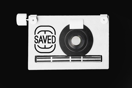Style: Typographic Logo image prompt/ A stylish minimalistic typography narrow letters logo in a frame for a modern tech youth urban brand called «SAVED» with the copyright icon at the end of the word.