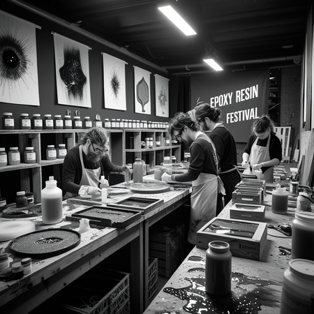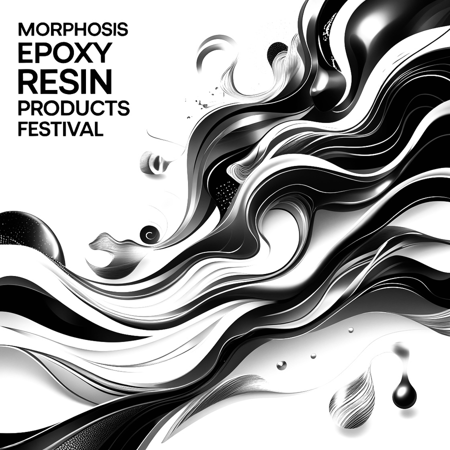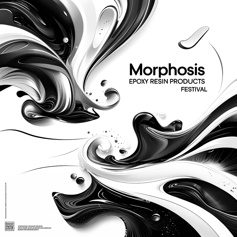 Prompt: poster of the morphosis epoxy resin products festival in black and white