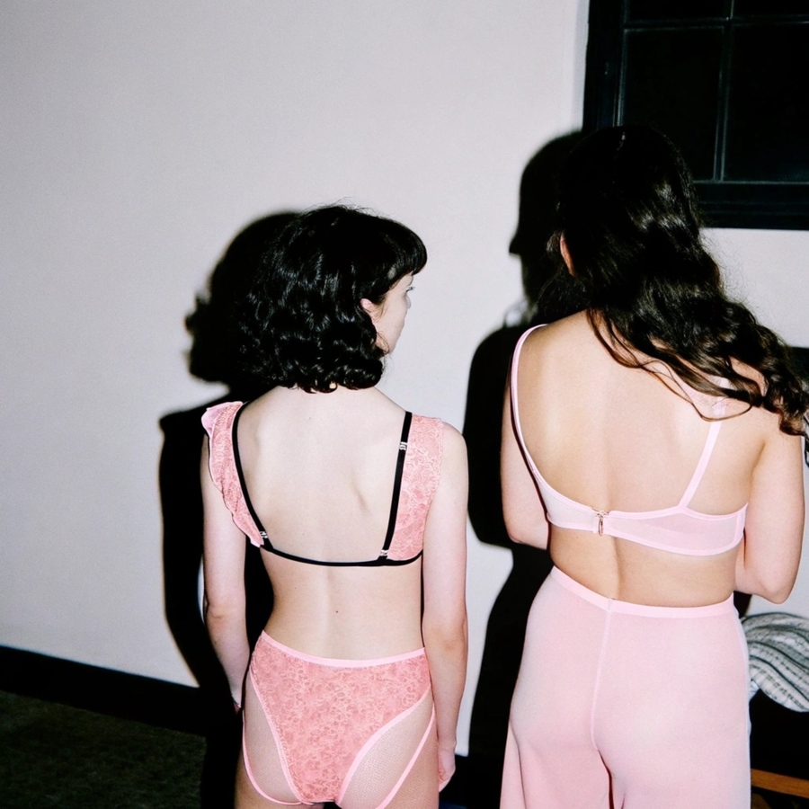 recraft; стиль — hard flash палитра — f4bebe; 696969; 000000 prompt1: a record with music for a romantic evening on the player prompt2: instagram post for underclothes brand by people for people. girls with model appearance prompt3: instagram post for underclothes brand by people for people. girls with model appearance from behind prompt4: instagram post for underclothes brand show underpants close prompt5: instagram post for with paper clips close with packaging from fabric with a zipper prompt6: instagram post for underclothes brand by people for people. girls should be in blur + доработка в Photoshop