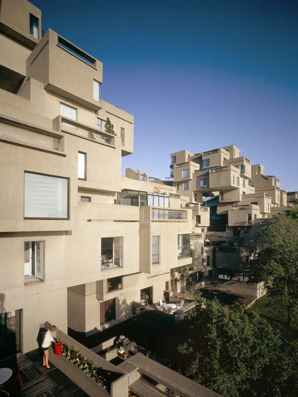 Жилой комплекс «Хабитат 67», Монреаль. Вид на террасы. Архитектор: Моше Сафди.