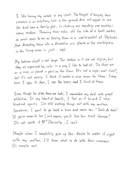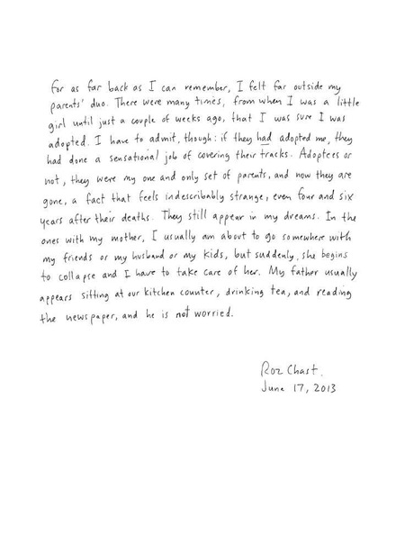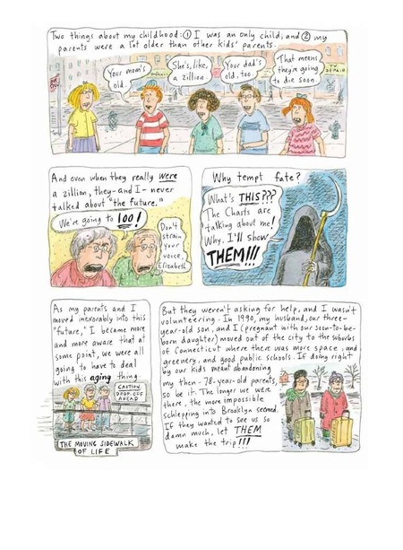Роз Част, как и Линда Барри, применяет «дневниковый» подход. Она оставляет записи на всю страницу, рассказывая о своих чувствах, тревогах и моральных дилеммах. Однако развороты комиксистки более структурированы: в них Роз старается усмирить хаос, происходящий вокруг и не дать тревоге овладеть ей полностью.