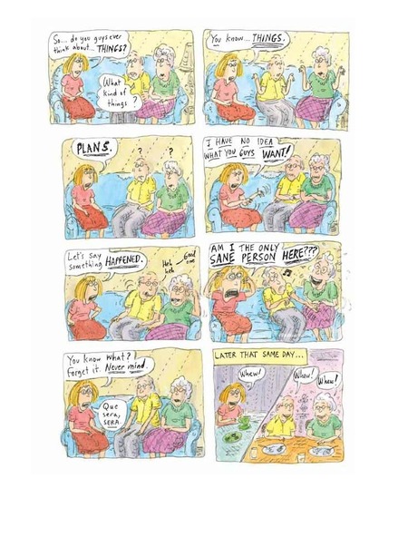В «Can’t We Talk About Something More Pleasant?» Роз прорабатывает свой травматический опыт через творчество, как это делали Комински-Карамб и Барри. Она рассказывает о непростых отношениях с родителями в кризисный период, а также о большой психологической нагрузке. С помощью создания комикса художница переживает боль, структурируя и разбирая ее на составляющие.