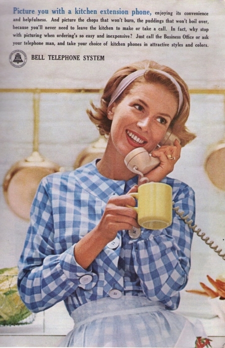 Реклама кабельных домашних телефонов «bell telephone system» 50-60 годы