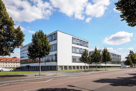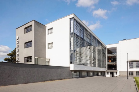 Главный фасад — стена сплошных окон, визуально «обездвиженная» лишь тонким металлическим каркасом. Количество декора сведено к нулю. Полное следование принципам функционализма, прозрачность, призыв к конструктивной честности и индустриальному прогрессу. Баухаус воплощает кульминацию раннего модернизма, где фасад — результат оптимизации для идеального светового режима.