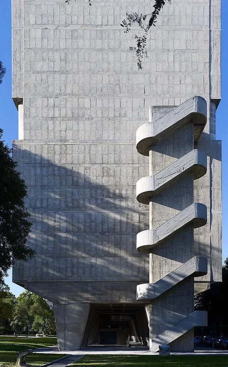 Образцовая работа американского брутализма, учебный корпус факультета искусств и архитектуры.