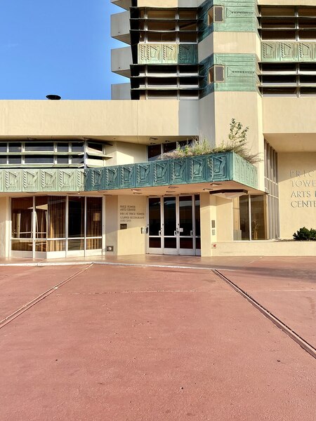 Фасад — массивная бетонная поверхность, резкие выступы окон, отсутствие декора, глубокие ниши. Фасад как манифест материала и массы, максимальная скульптурность. Яркий представитель американского монументального брутализма.