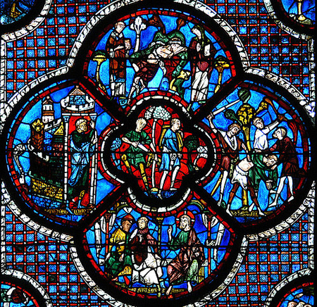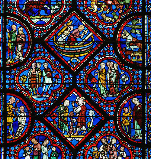Слева: Окно Доброго Самаритянина, Шартрский собор, Франция, начало XIII века. Справа: Окно Ноя, Шартрский собор, Франция, начало XIII века.