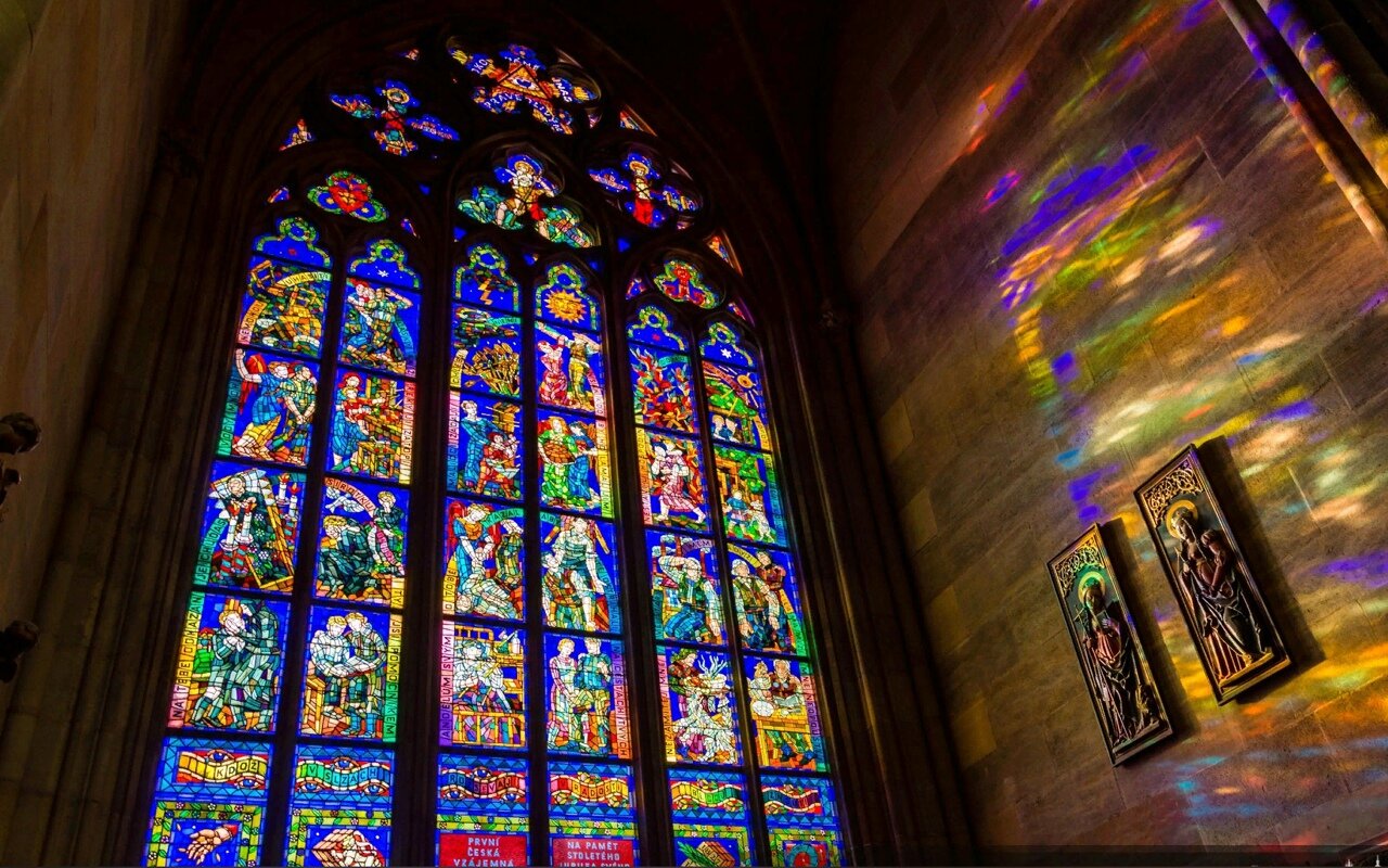 Витраж «Сеющие со слезами, пожнут посеянное в радости», Собор Святого Вита, Чехия, 1927–1929 гг.