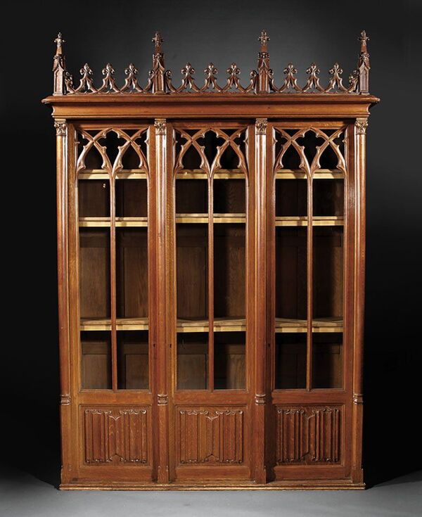 Слева: Стены с отделкой элементов готического окна Справа: Шкаф с элементами готического окна
