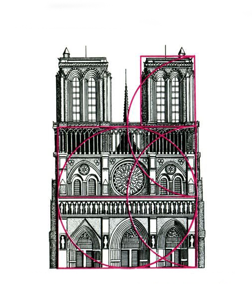 Золотое сечение в Соборе Парижской Богоматери, Франция, 1163–1345 гг.