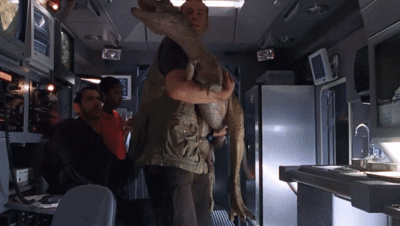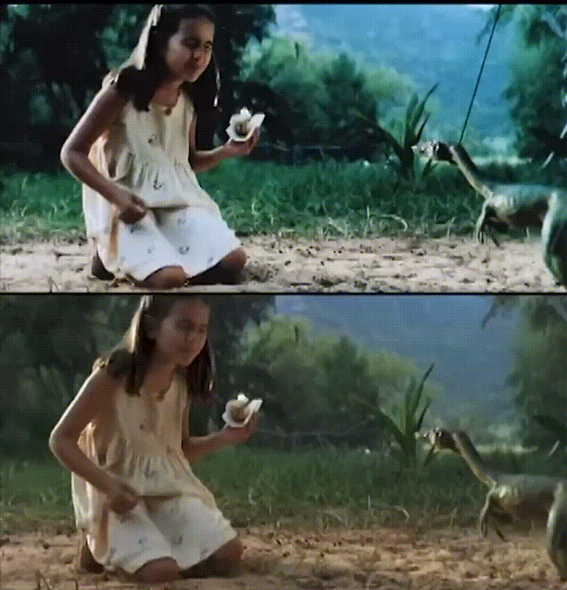 фрагмент из фильма «Парк Юрского периода» 2, где для создания динозавров важно было использовать и CGI, и аниматроника