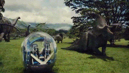 фрагмент из фильма «Мир Юрского периода» (2015). Использование CGI для создания динозавров