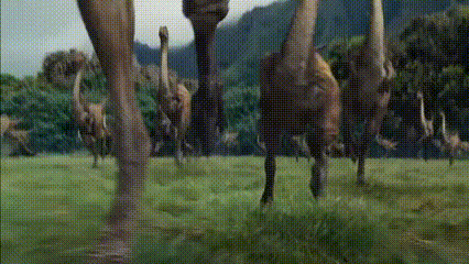 фрагмент из фильма «Парк Юрского периода» (1997). бегущие динозавры