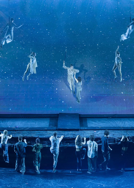 А у нас дочка в театральной школе, поэтому она уже умничает. Конечно, ей нравится — спектакль не может быть проигнорированным. Если опустить глубинные вещи, то в первую очередь все ребята удивляются графике, как там кто прыгает, летает. Сейчас же вокруг них повсюду графика, поэтому это их любимые вещи, которым они, конечно, поражаются всегда. Они в телефонах играют в игры, а тут прямо перед ними огромный телевизор.