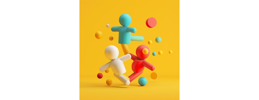 [Красочные минималистичные 3d фигуры в воздухе, жёлтый фон]