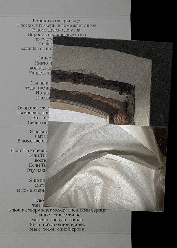 Фотозин по мотивам песни «Северный цвет» группы «Аквариум» повествует о внутреннем пути и духовном пробуждении. Лирический герой оказывается на грани перемен: он сталкивается с символическими образами — Вороникой, зверем, ангелом, стеклом, стеной, Севером. Ключевой мотив — движение не наружу, а внутрь.