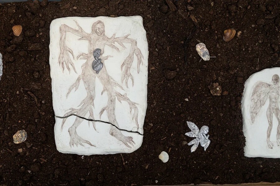 Коробка в форме сердца, 2023 (1)/Холодную землю грею, 2023 (2)/Холодная земля греет, 2023 (3)/Процесс создания работ (4-5)