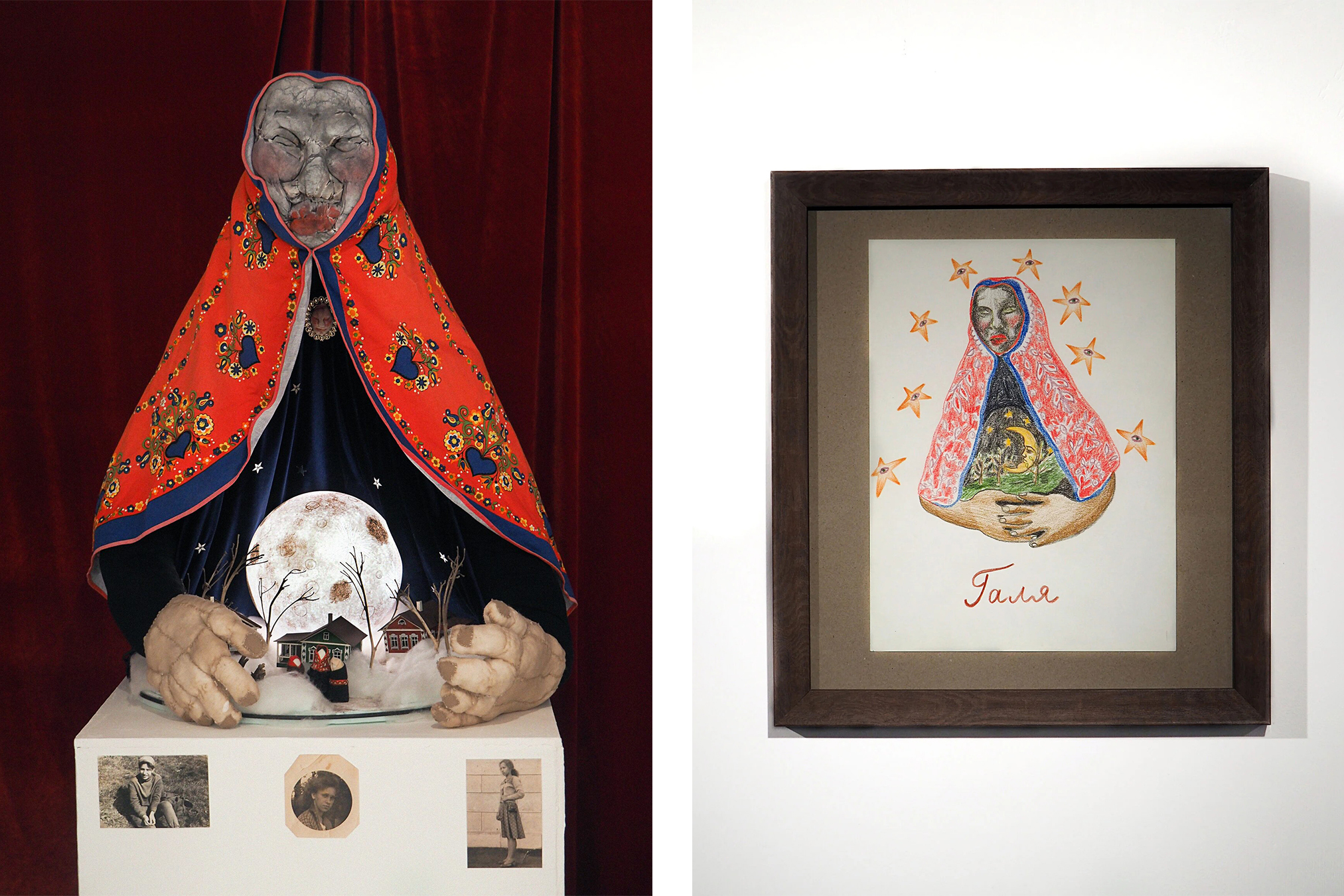 Инсталляция «Галя» на выставке IGO в галерее «Новая искренность», Москва, 2020 (1-4)/Инсталляция «Галя» на выставке номинантов 2-й Московской Арт Премии, парк «Зарядье», Москва, 2021 (5-8)