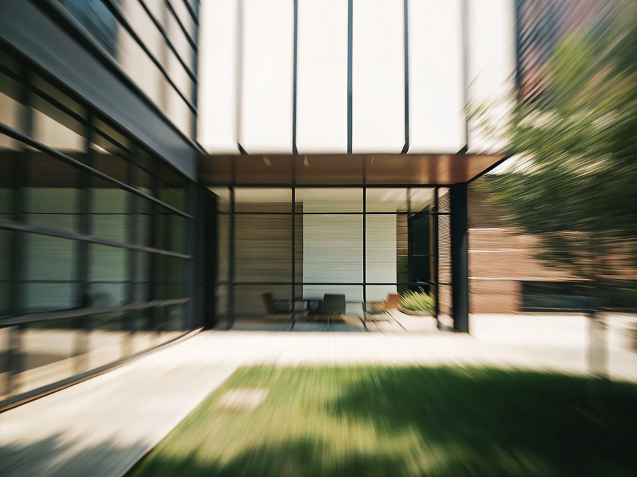 Промт: A contemporary office building with a horizontal and abstract style in an urban setting. The design is inspired by calming pastel colors, creating a contemporary aesthetic. The lower floors of the façade are finished with large, gradient glass panels, while the upper floors are clad with more massive, undulating white panels with backlighting. The interior is intended to represent an office space with natural light, modern furniture, and a sense of