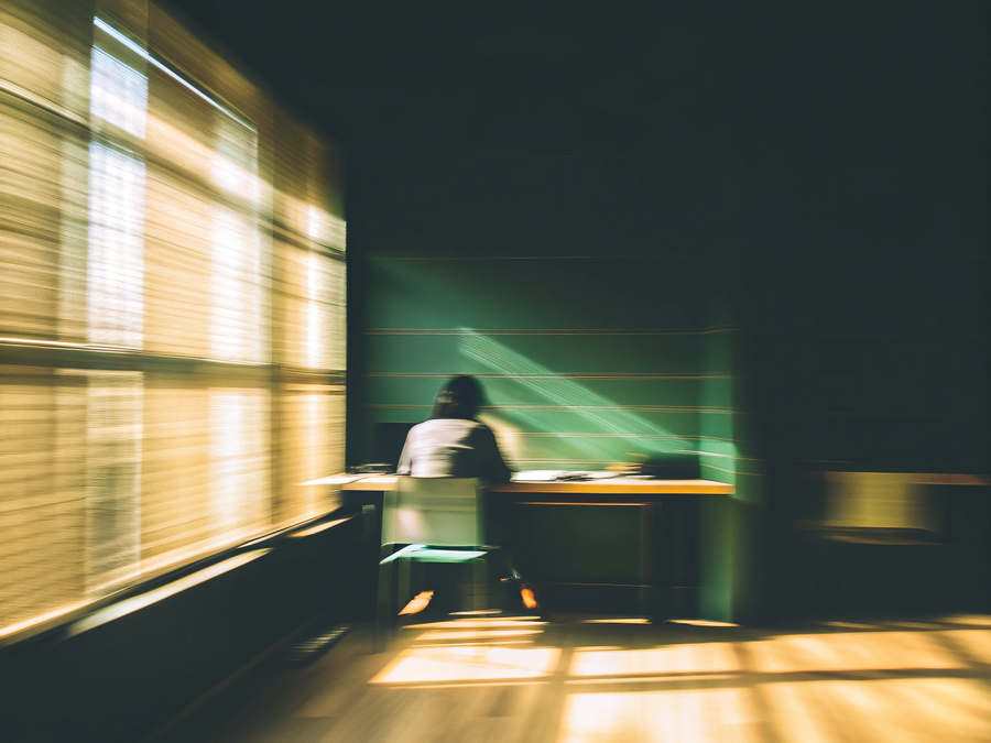 An office space with pastel shades, nothing superfluous, natural lighting, backlighting in purple shades Изображения созданы в Recraft