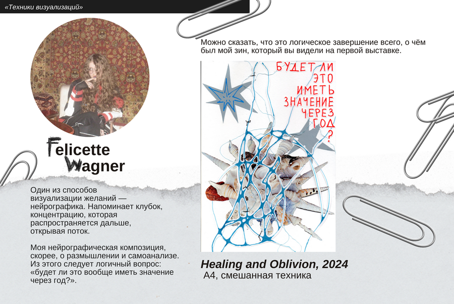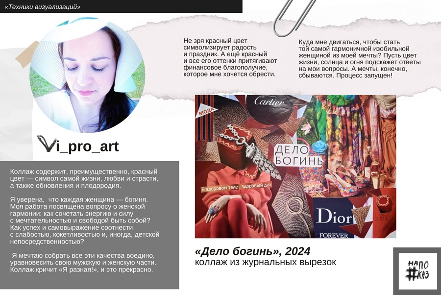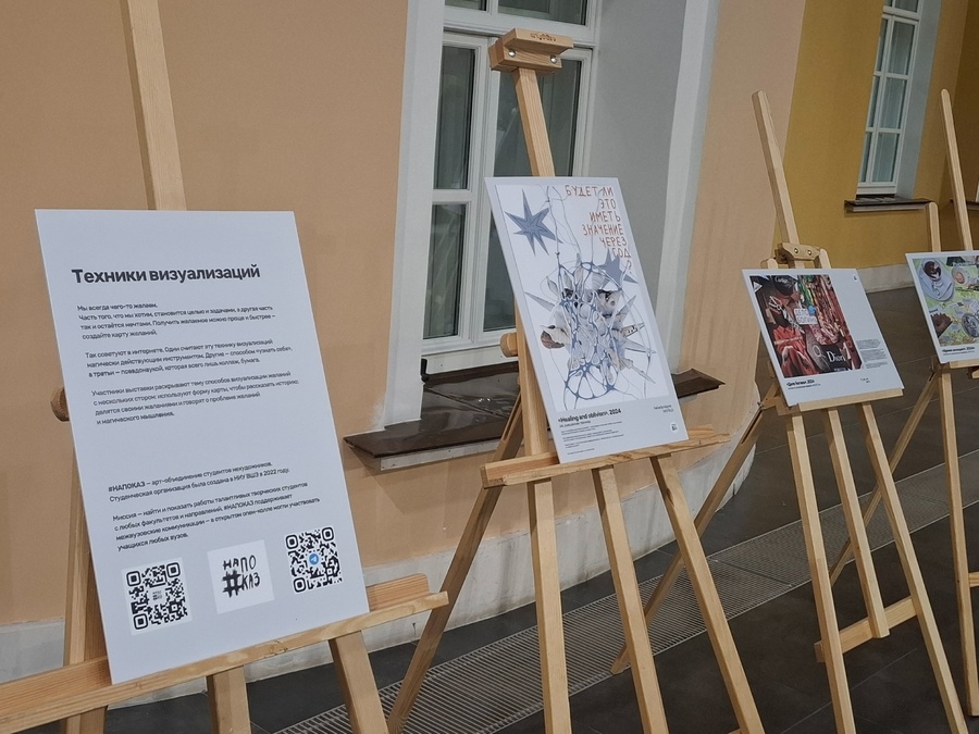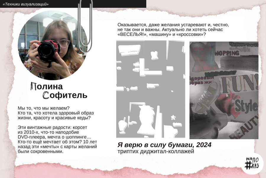 Для этой выставки мы предложили студентке Факультета психологии НИУ ВШЭ Даше Безгодовой рассказать зрителям выставки, как работают карты желаний с точки зрения психологии.