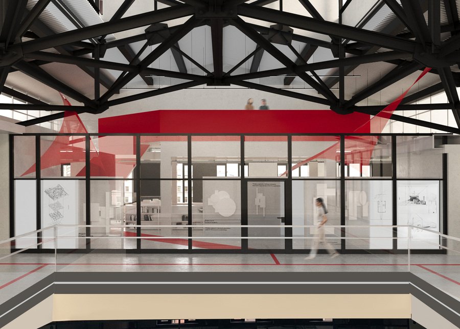 Идея оформления пространства связана как с новым архитектурным направлением, так и с уже существующими, при этом учитывая исторический контекст постройки здания Канатного цеха с водонапорной башней завода «Красный гвоздильщик» в рамках конструктивизма.