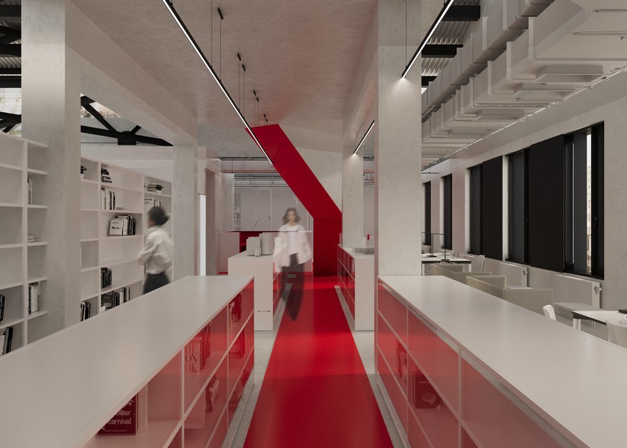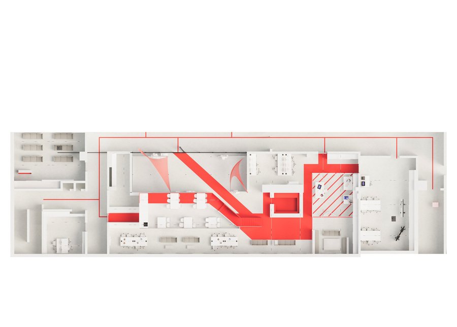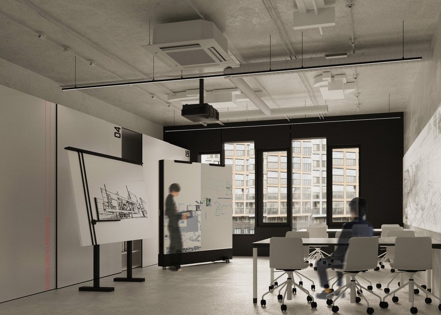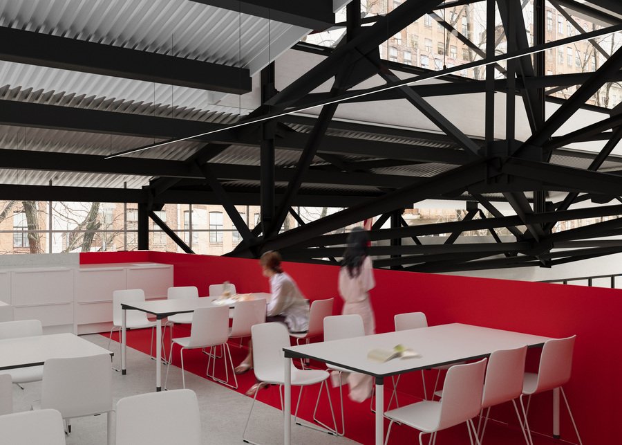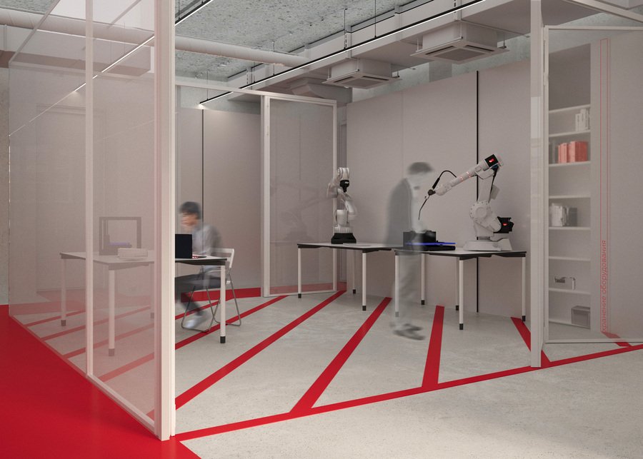Кафе; производственная зона; зона обсуждений; коворкинг