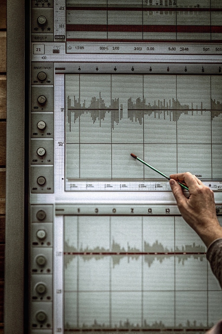 Их соединение — не просто образ, а техническая правда. Большинство звуков начинались как векторные структуры (MIDI/latent prompts), но проходили через аналоговые фильтры, ручную реверберацию и хаотичные обработки, характерные для живой студийной работы.