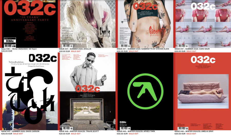 Coverjunkie — 032c Archives — коллекция обложек разных выпусков. (Дата обращения: 12.11.2025) URL: https://coverjunkie.com/magazines/032c/