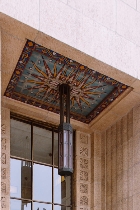 Вход здания «Баллокс Уилшир», Джон и Дональд Паркинсоны, Лос-Анджелес, США, 1929